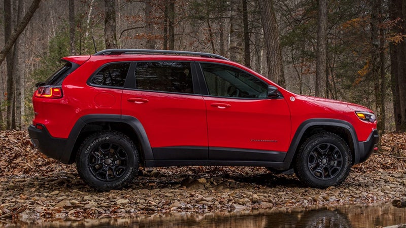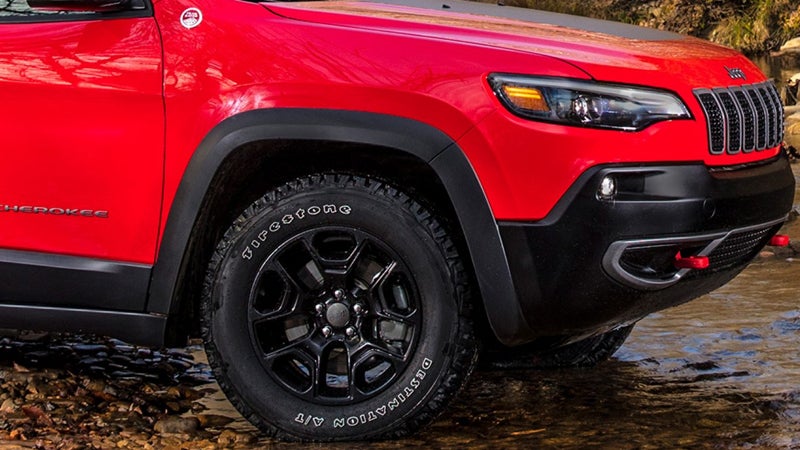 The top two trim levels offer top-of-the-line perks. The Trailhawk Elite trim comes with a hands-free, foot-activated power liftgate. Choose the Overland trim for several interior upgrades and chrome tow hooks.