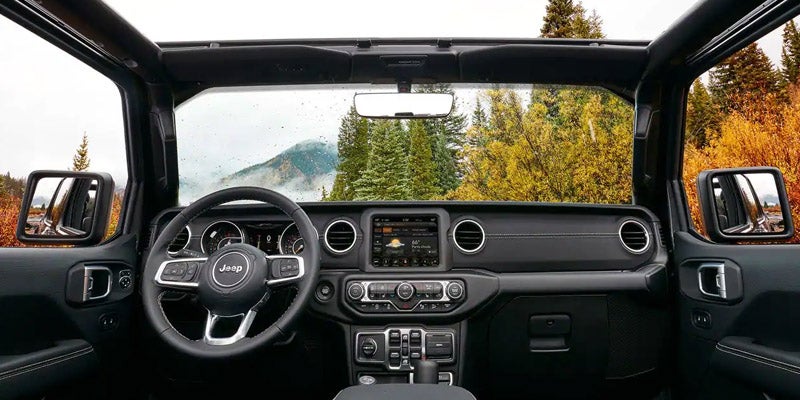 A Sport Altitude trim comes standard with a black three-piece hard top, while the Sahara model offers injection-molded front and rear bumpers, side steps, and 18-inch wheels. Step up to the Sahara Altitude trim for a body-color three-piece hard top. The Rubicon model is designed with additional off-road features for the serious adventurer and comes with red tow hooks and a soft top. For all the top-of-the-line features, the Moab trim has LED exterior lighting, steel bumpers, and loads of other upgrades.